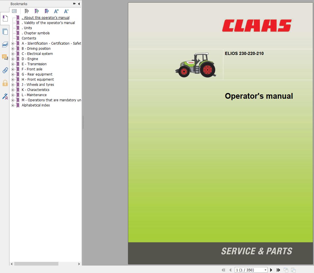 CLAAS ELIOS 200 A28 Operators Assembly Technical Repair Manual