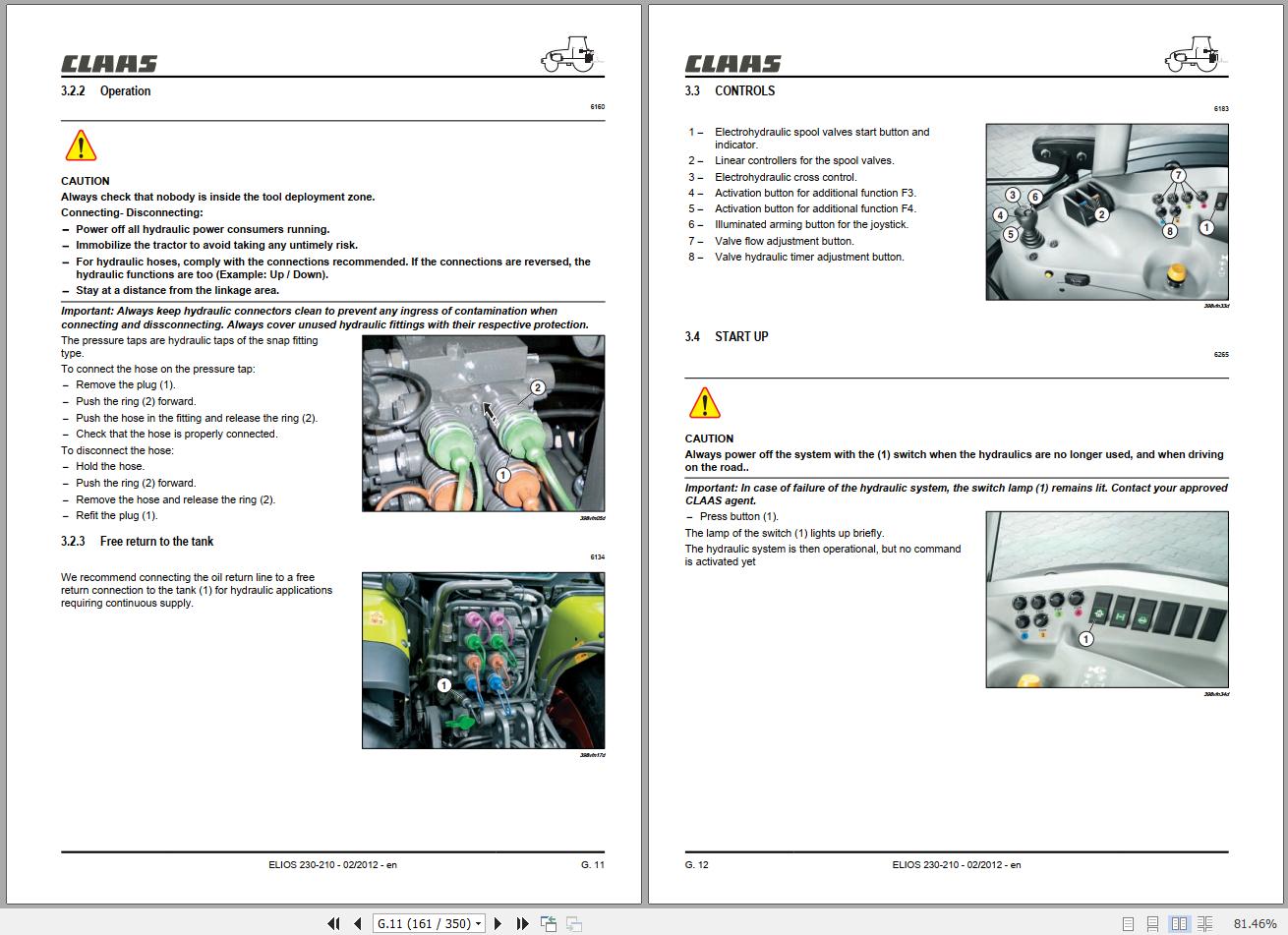 CLAAS ELIOS 210 220 230 Hydraulic Fitting With Original Control Valves Assembly Instruction 00 1142 792 2 PDF