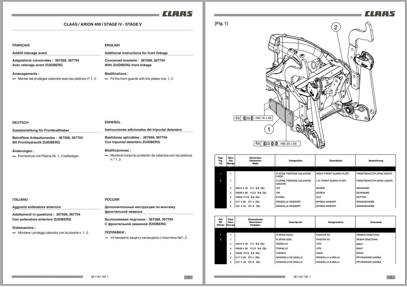 CLAAS ARION 400 Stage IV & V Additional Instructions For Front Linkage Assembly Instruction 00 1161 707 1 PDF