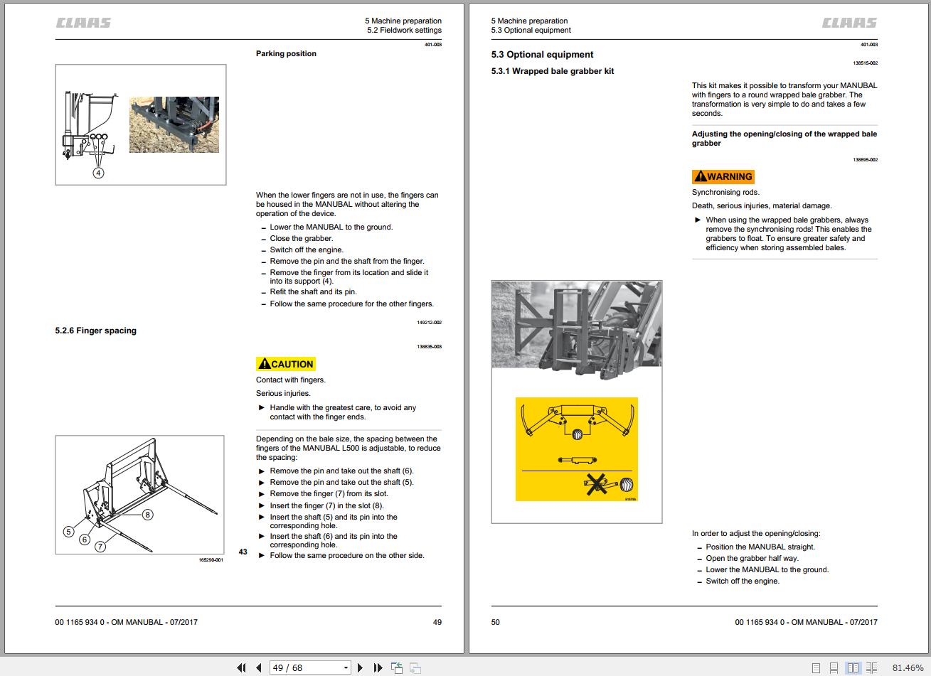CLAAS FL60 FL80 FL100 FL120 FL150 FL250 BR30 Round Bale Elements Assembly Instructions 00 1142 017 0 PDF
