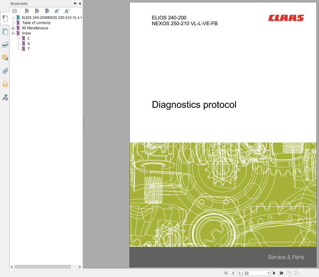 CLAAS ELIOS 240-200 NEXOS 250-210 VL-L-VE-FB Diagnostics Protocol 00 1167 526 0 PDF