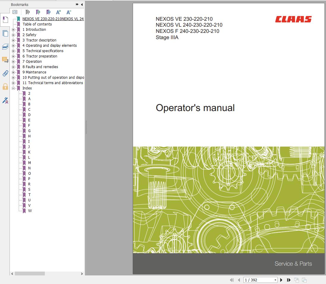 CLAAS NEXOS VE 230-220-210 NEXOS VL 240-230-220-210 NEXOS F 240-230-220-210 Stage IIIA Operators Manual 00 1173 906 1 PDF