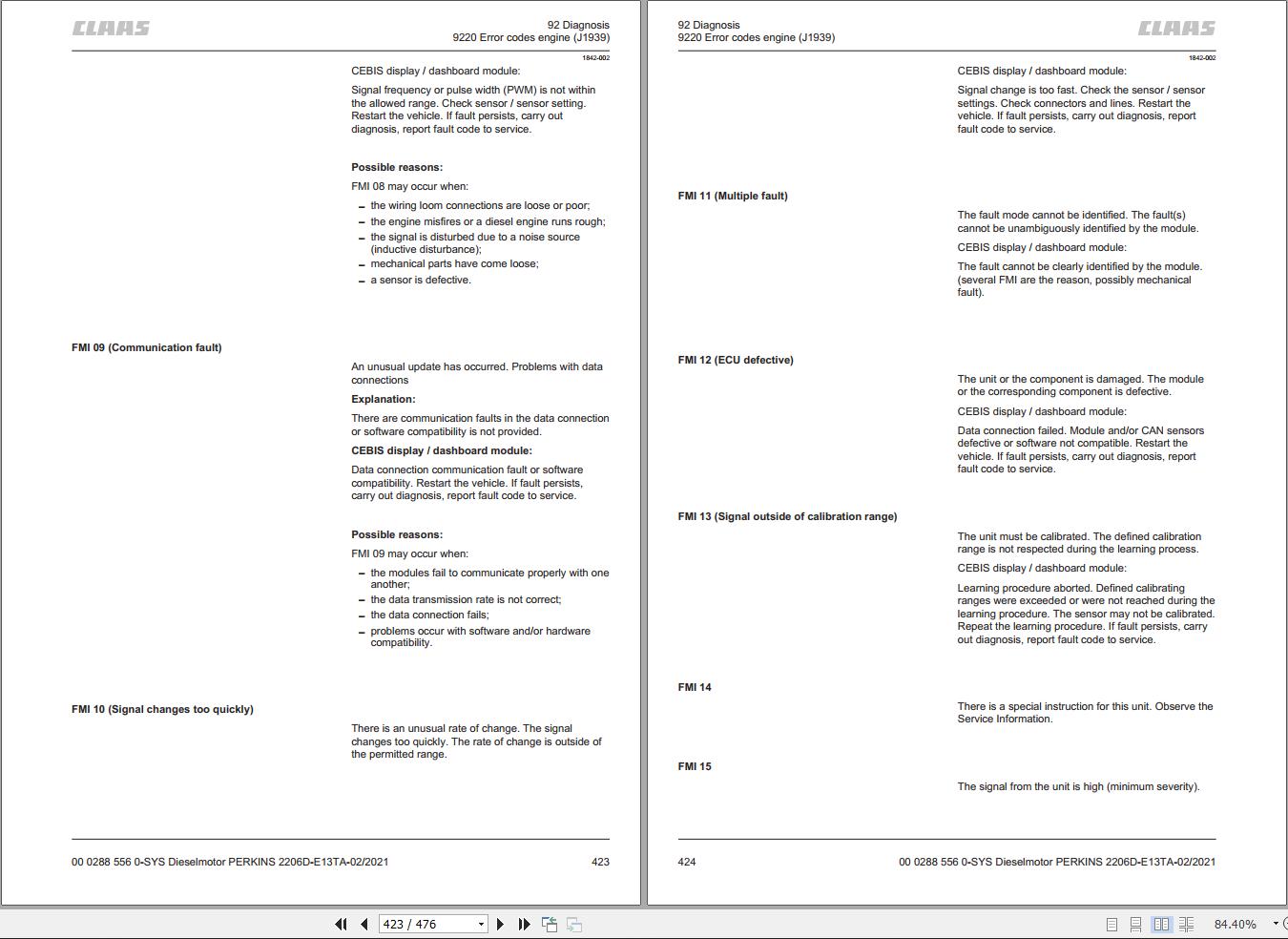 Claas Perkins Engine 2206D - E13 TA Technical Systems 00 0288 556 0