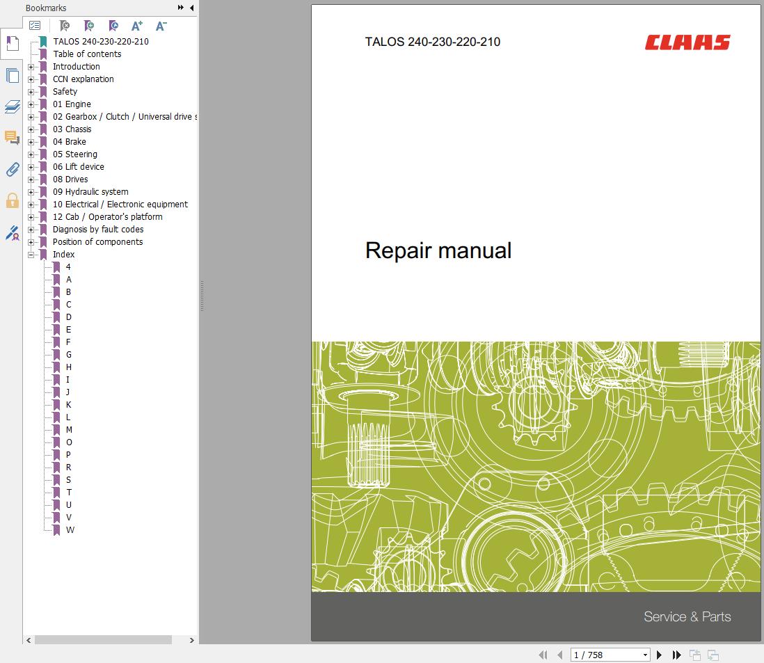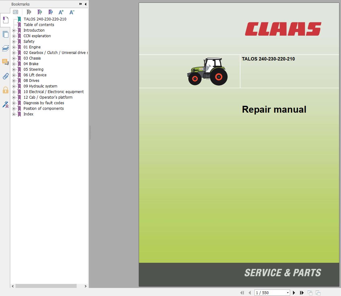 CLAAS TALOS 240-230-220-210 Repair Manual 00 1150 411 1 PDF
