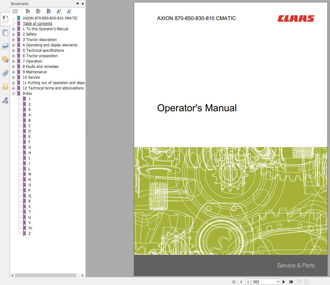 CLAAS AXION 840-810 CMATIC (A31) Assembly Operators Repair Technical Manual