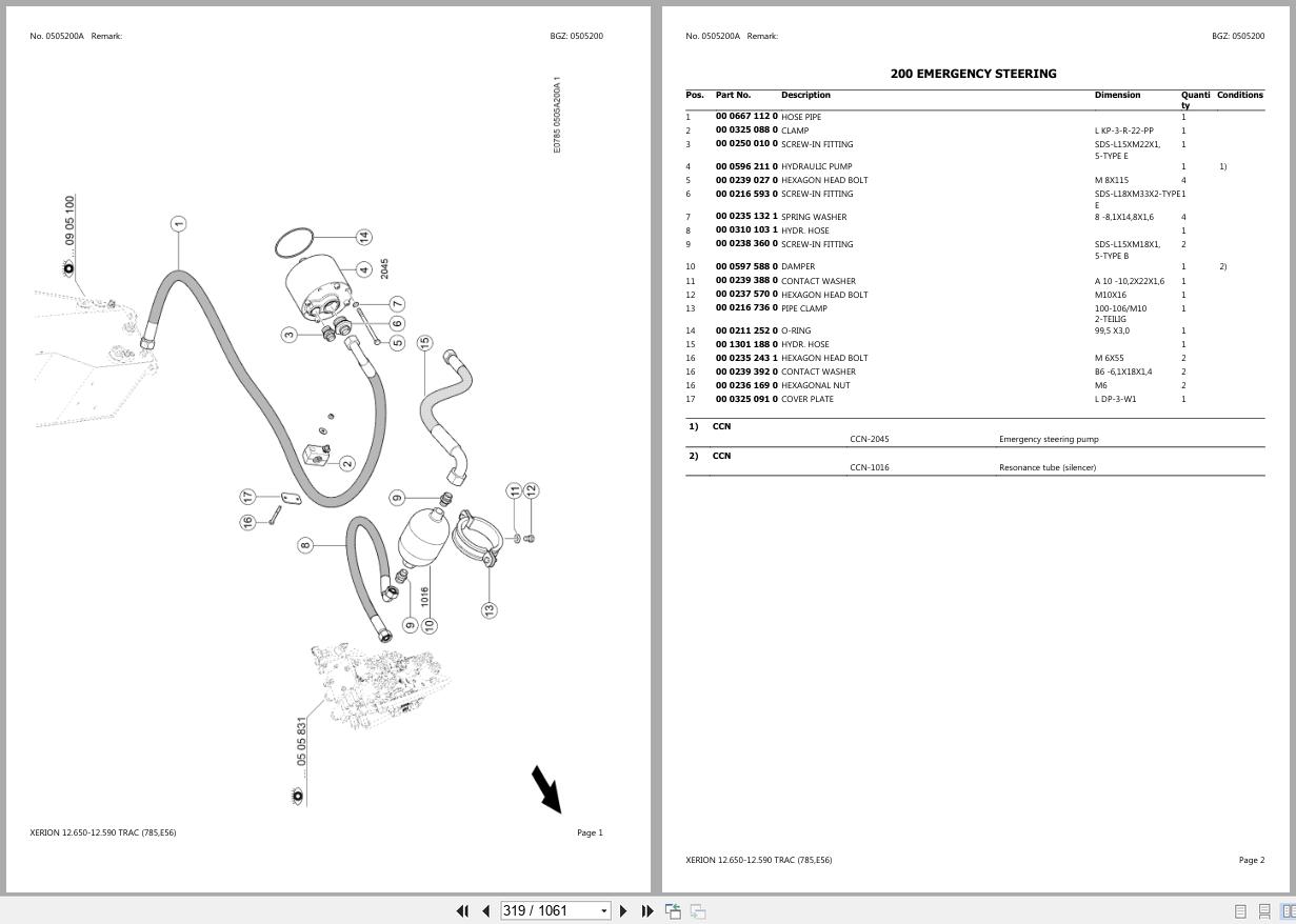 CLAAS XERION 12.650-12.590 TRAC 785 E56 78500011-78599999 Parts Catalog