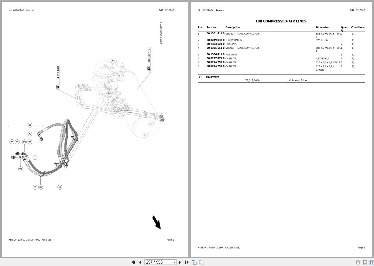 CLAAS XERION 12.650-12.590 TRAC E56 E5600011-E5699999 Parts Catalog