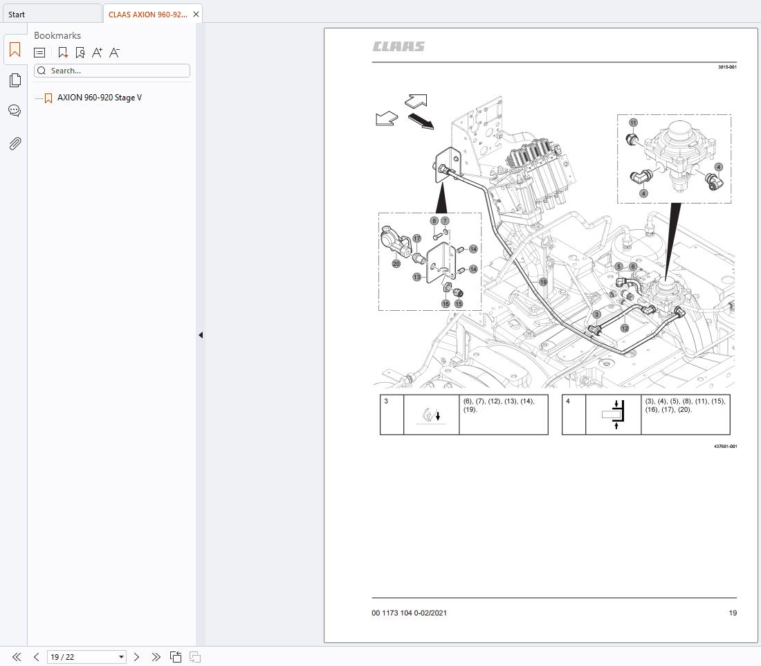 CLAAS AXION 960-920 Stage V Pneumatic Trailer Braking Kit Fitting Instruction 00 1173 104 0 PDF