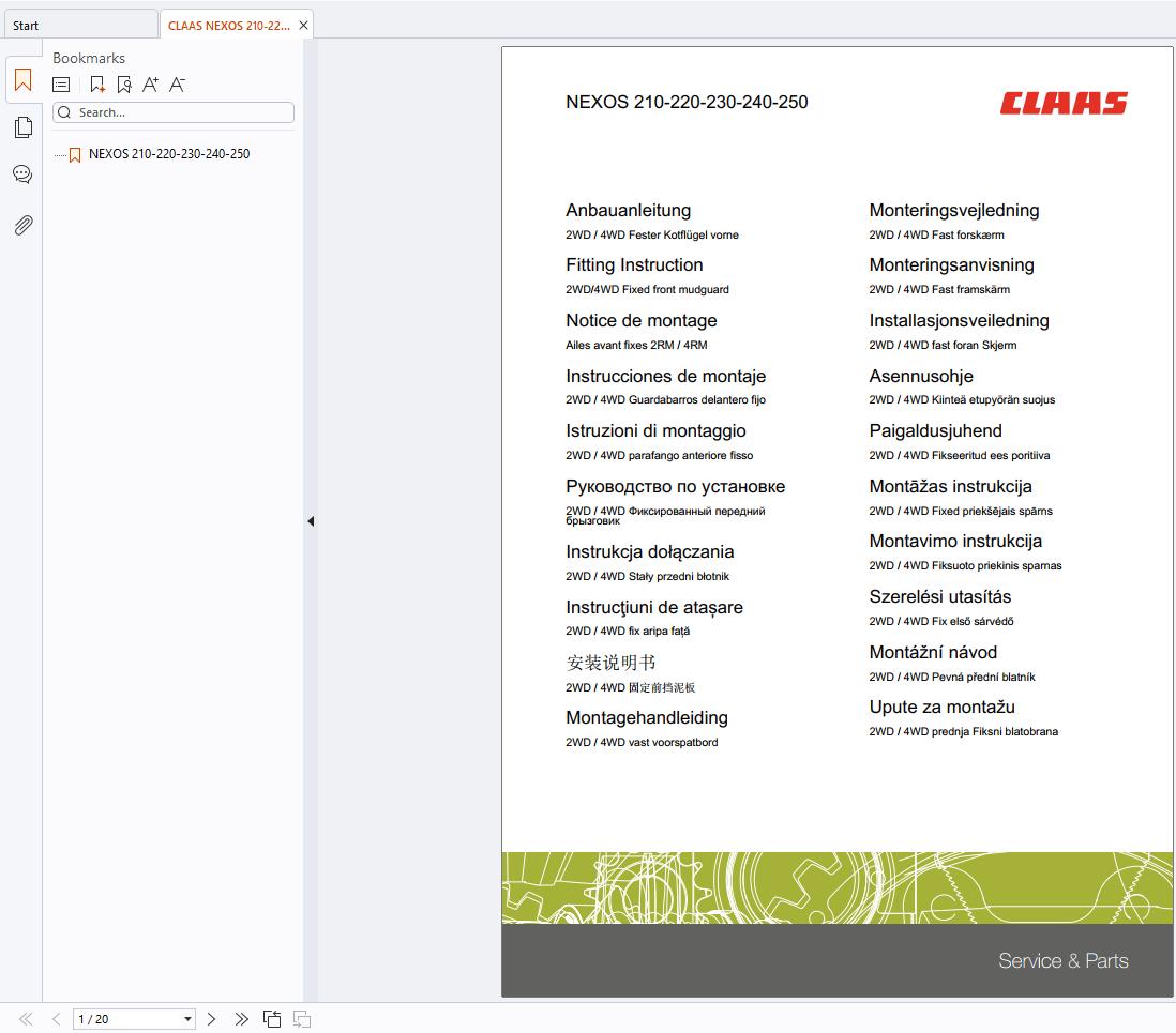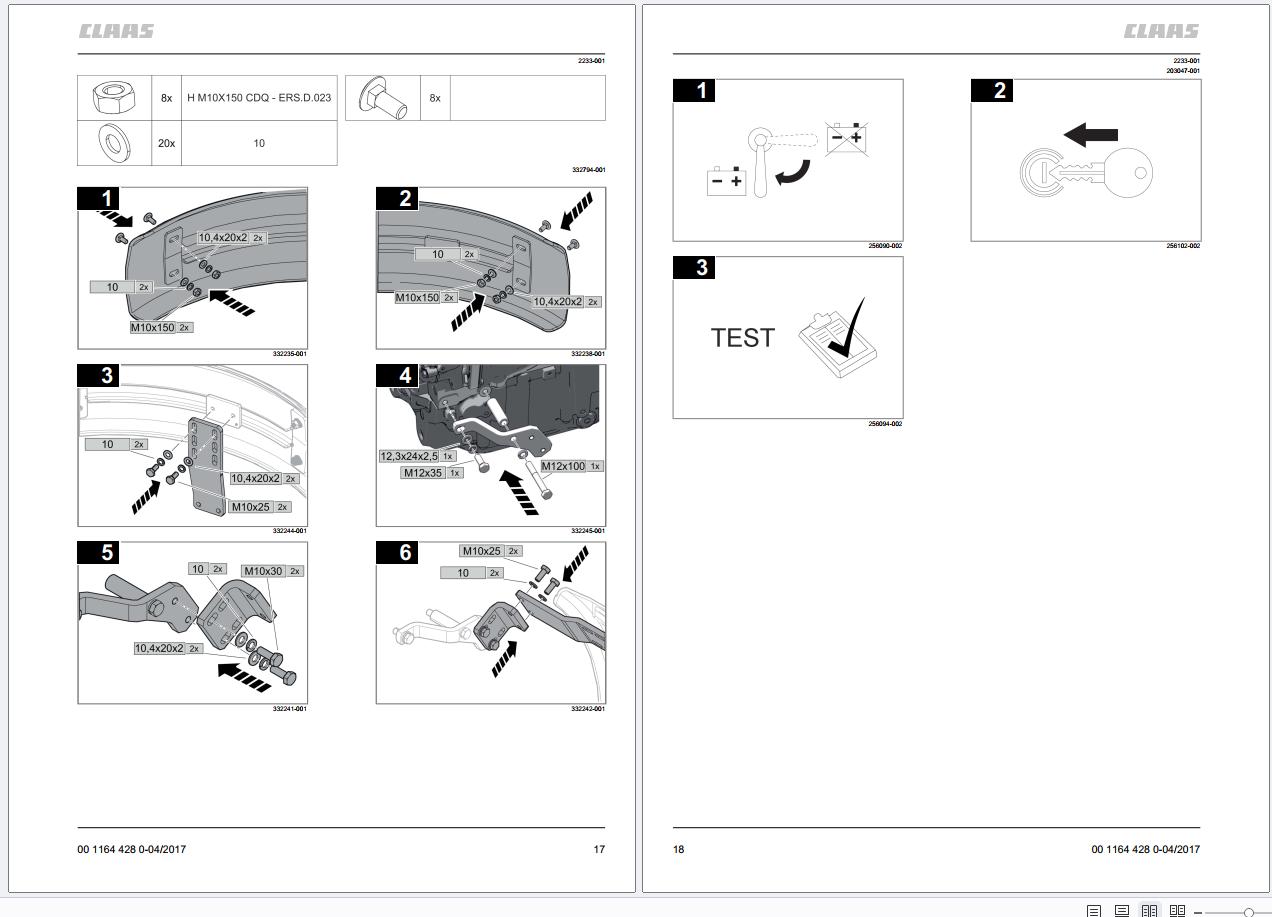 CLAAS NEXOS 210-220-230-240-250 2WD 4WD Fixed Front Mudguard Fitting Instruction 00 1164 428 0 PDF