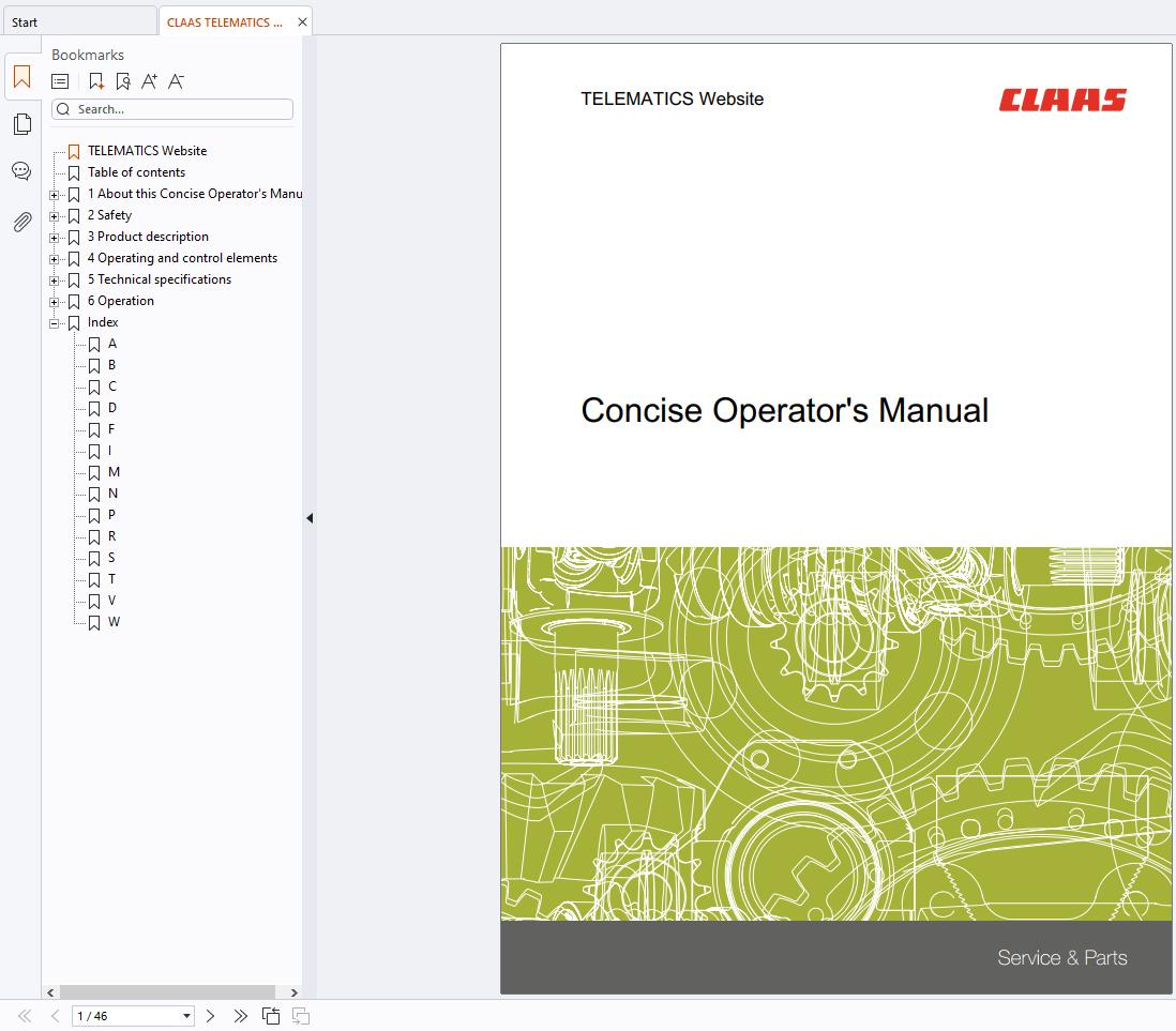 CLAAS TELEMATICS Website Concise Operators Manual 00 0018 552 1 PDF