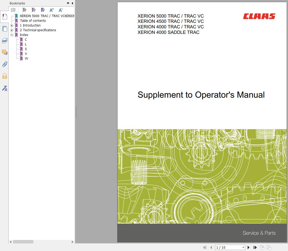 CLAAS XERION 4000 4500 5000 TRAC TRAC VC SADDLE TRAC Supplement to Operators Manual 00 0288 176 0 PDF