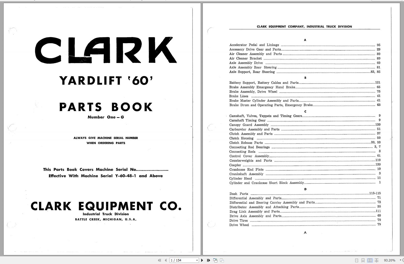 Clark 60 Parts Y-60-48-1 ManualSize: 19.0 MBMachine: ForkliftMachine Model: 60Serial Number: Y-60-48-1Pages: 154 Pages
