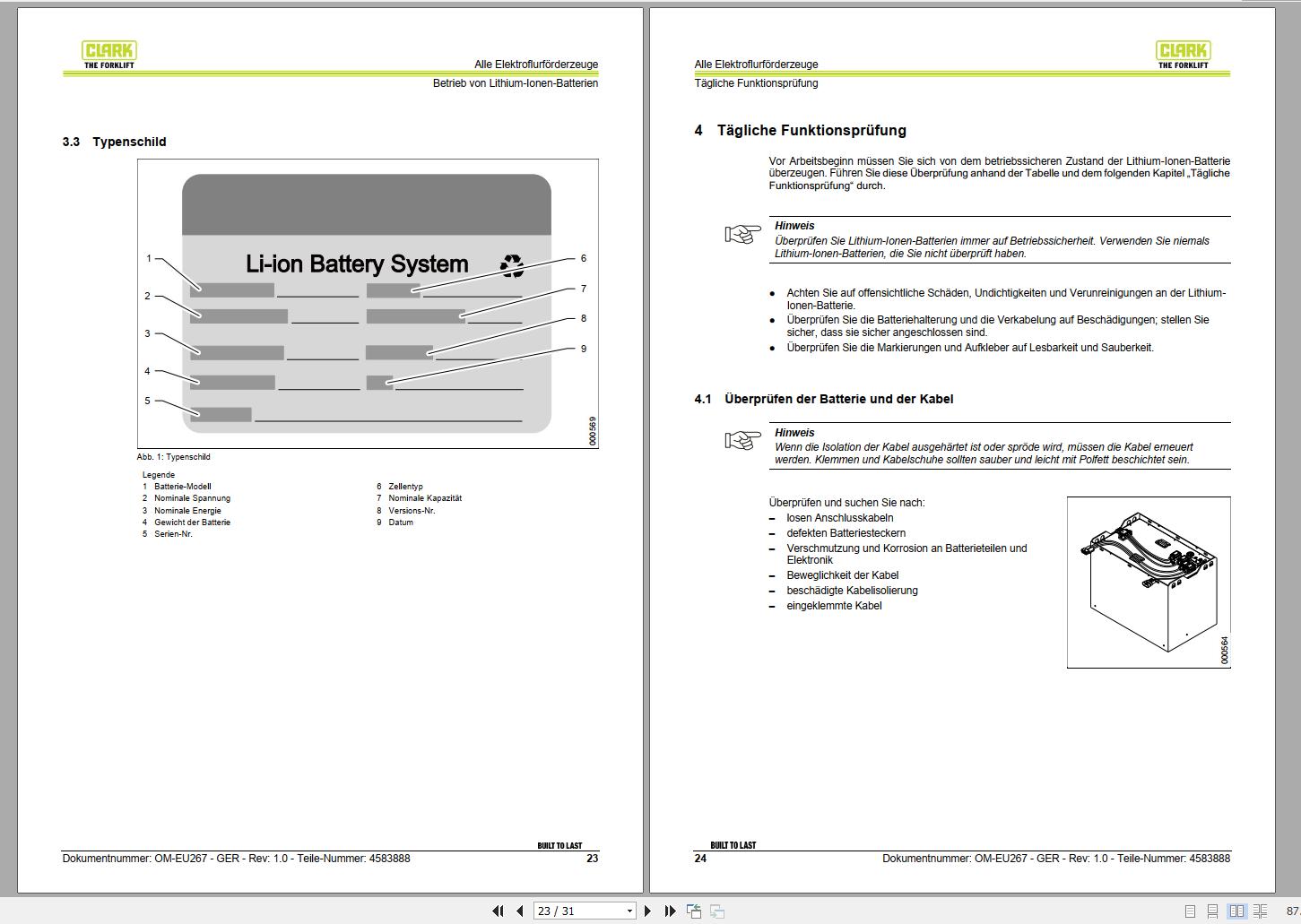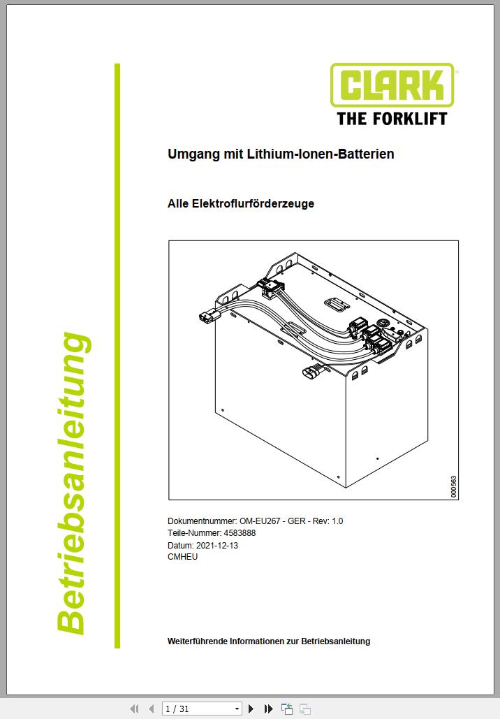 Clark All Electric Industrial Trucks Handling Lithum-Ion Batteries Operator Manual 4583888
