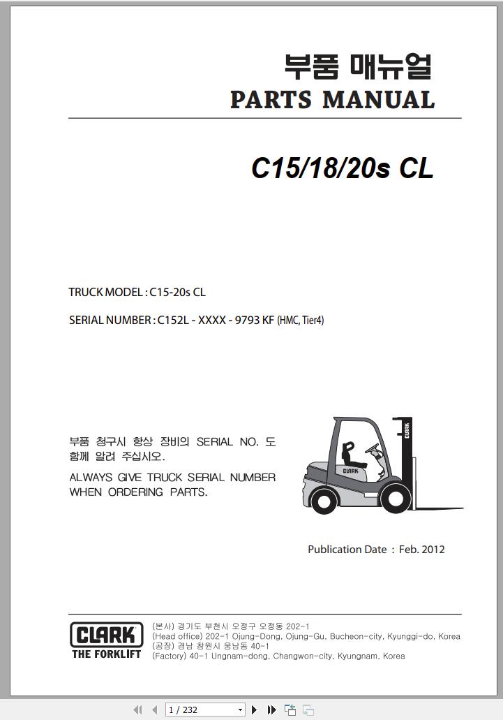 Clark C 15 18 20s CL C152L C152L 9793 KF Parts Manual