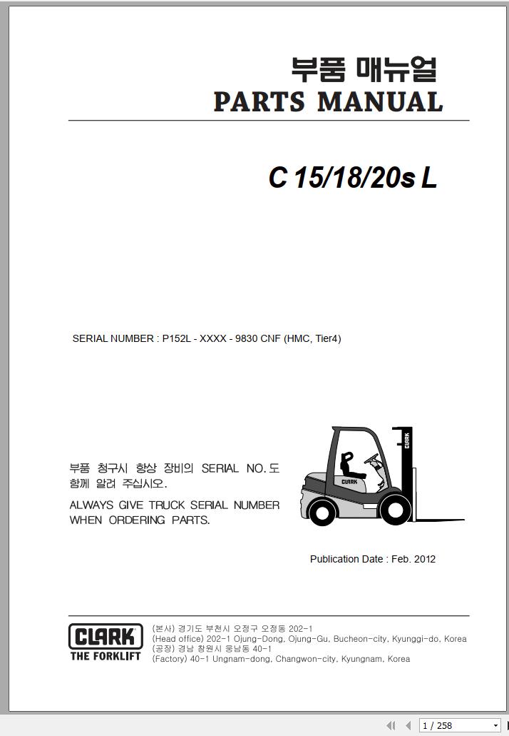 Clark C 15 18 20s L P152L P152L 9830 CNF Parts Manual