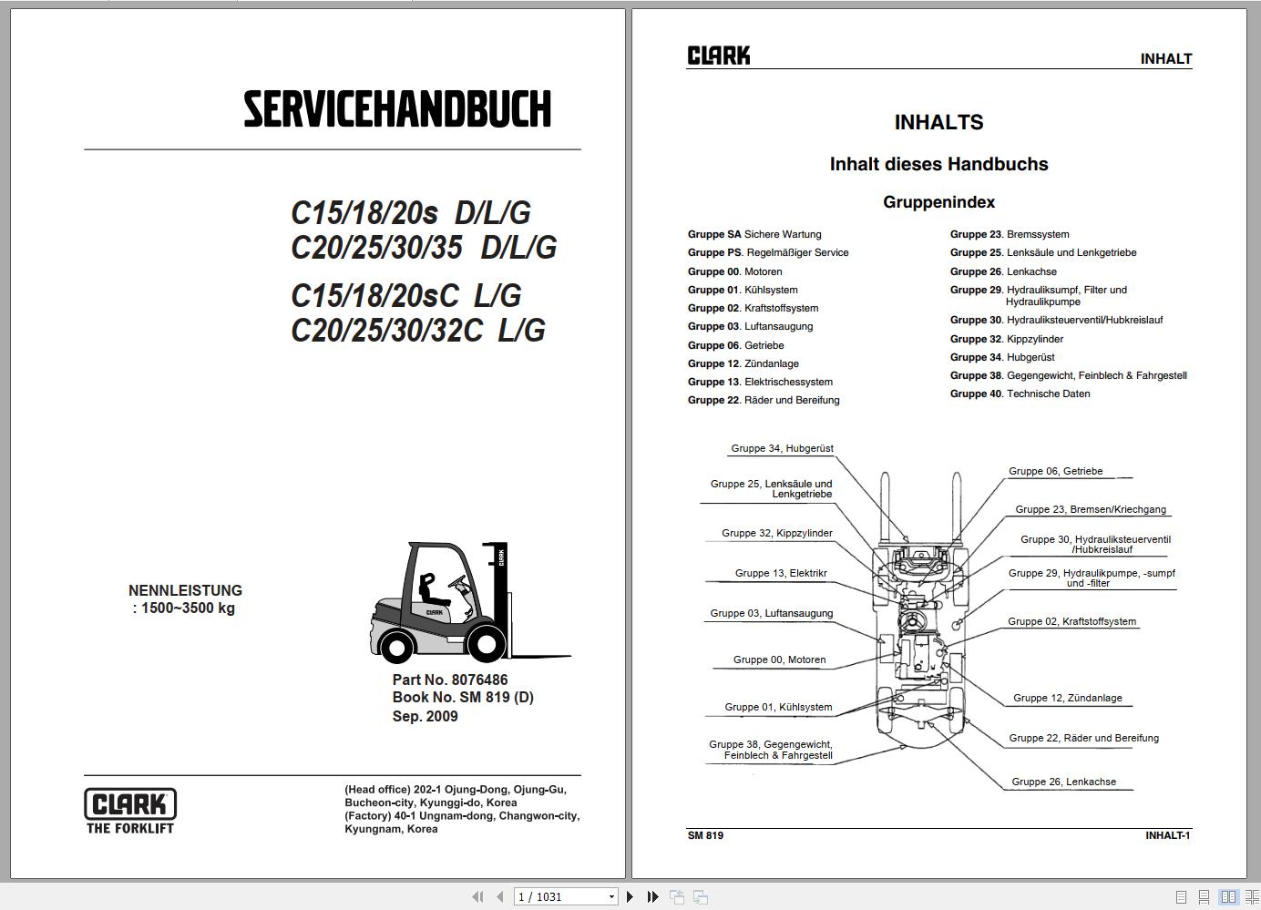 Clark C 15 - 20sC L G Service Manual 8076486 SM 819