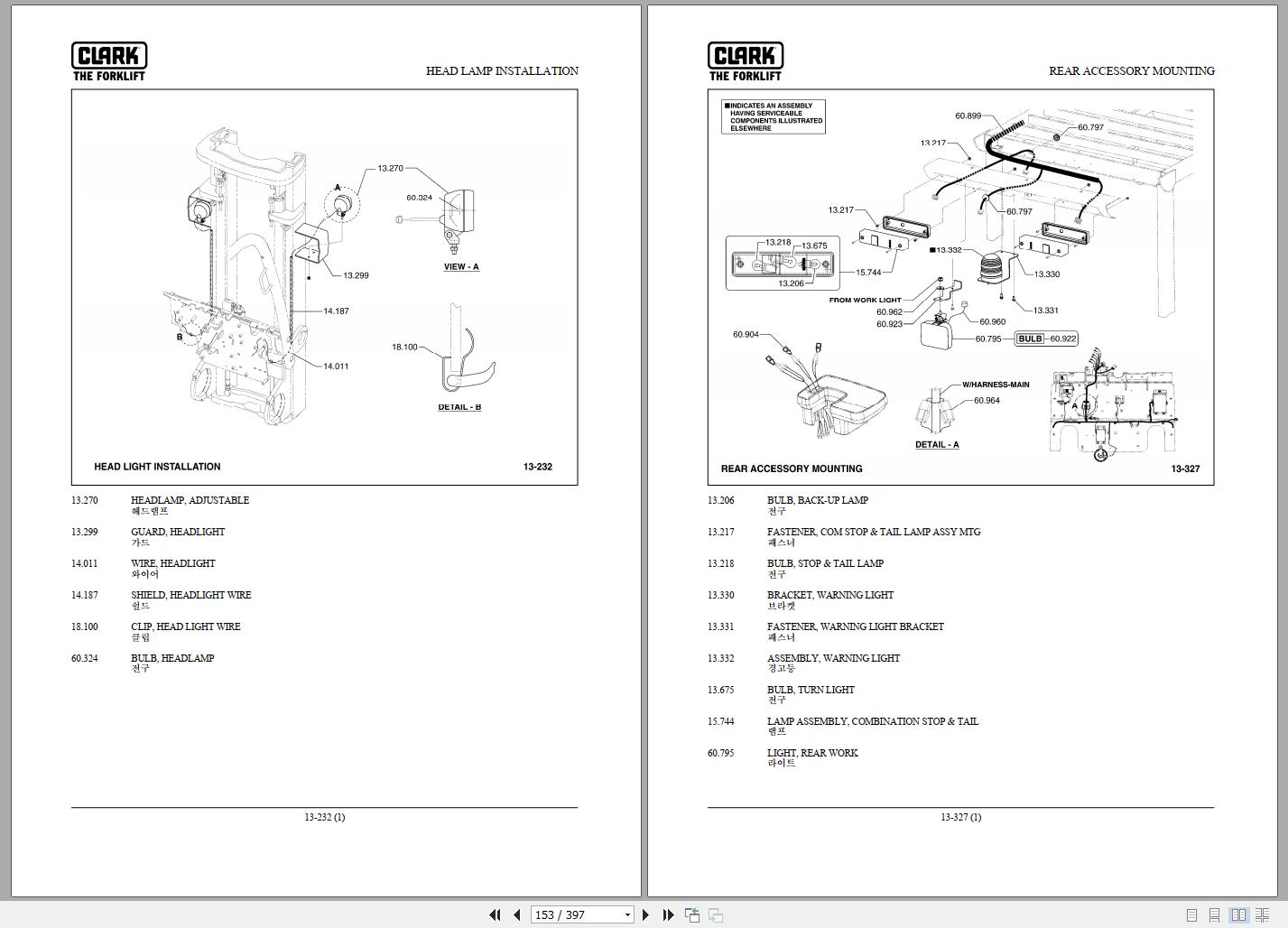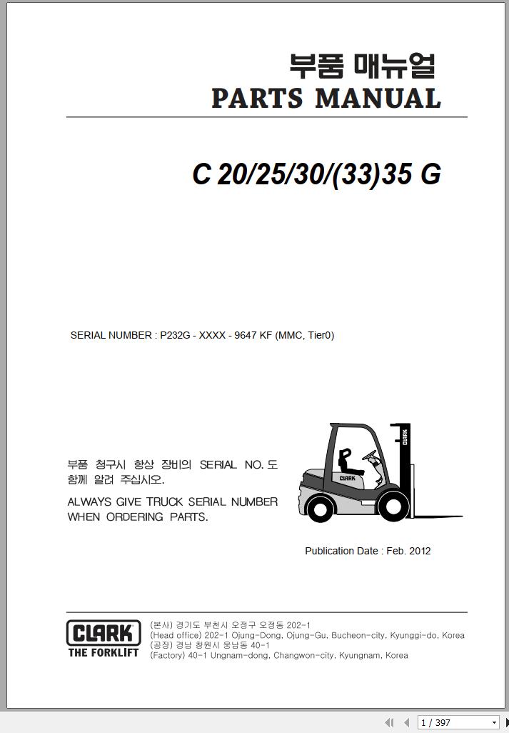 Clark C 20 25 30 33 35 G P232G 9647 KF Parts Manual
