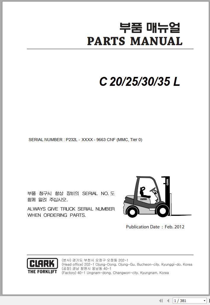 Clark C 20 25 30 33 35 L P232L 9663 CNF Parts Manual