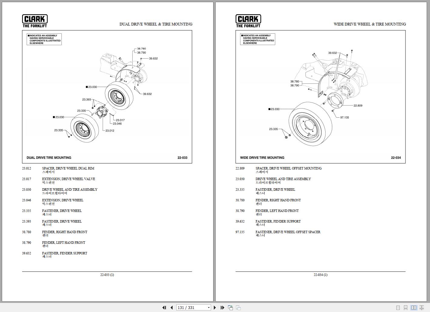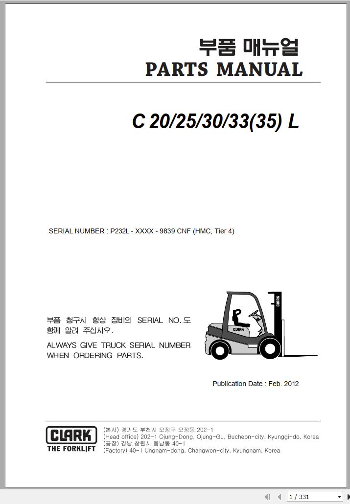 Clark C 20 25 30 33 35 L P232L 9780 KF Parts Manual