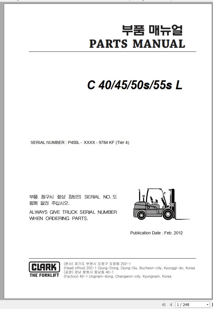 Clark C 40 45 50s 55s L P455L 9784 KF Parts Manual