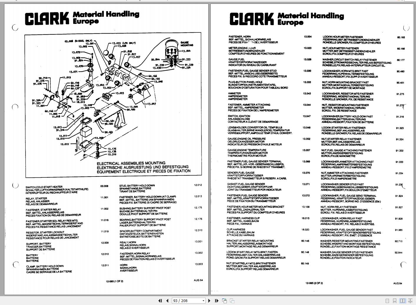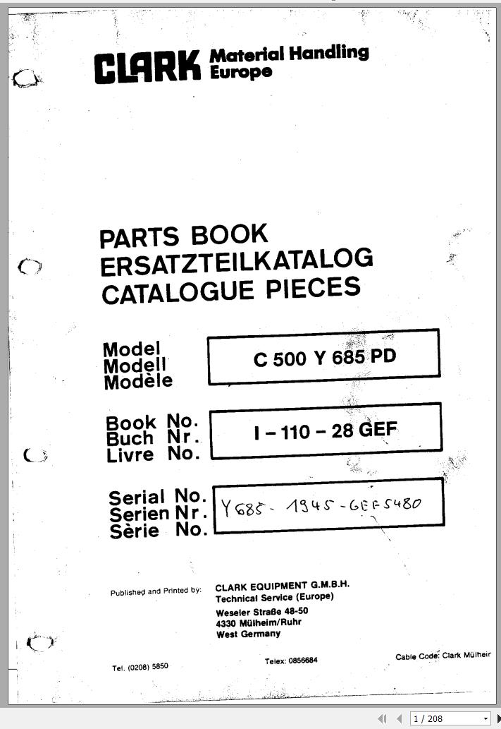 Clark C 500 Y 685 PD Y685 - 1945 - 6EF5480 Parts Manual I-100-28 GEF