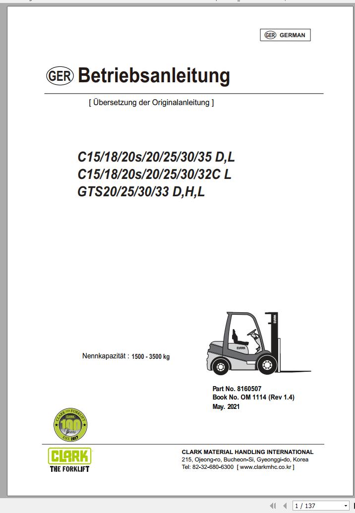 Clark C15 - C32 D L C GTS20 - GTS33 D H L Operator Manual 8160507 OM 1114