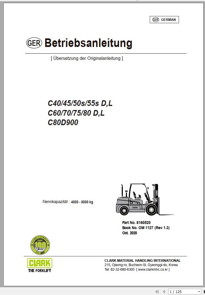 Clark C40 - C80 D L C80D900 Operator Manual 8160520 OM 1127