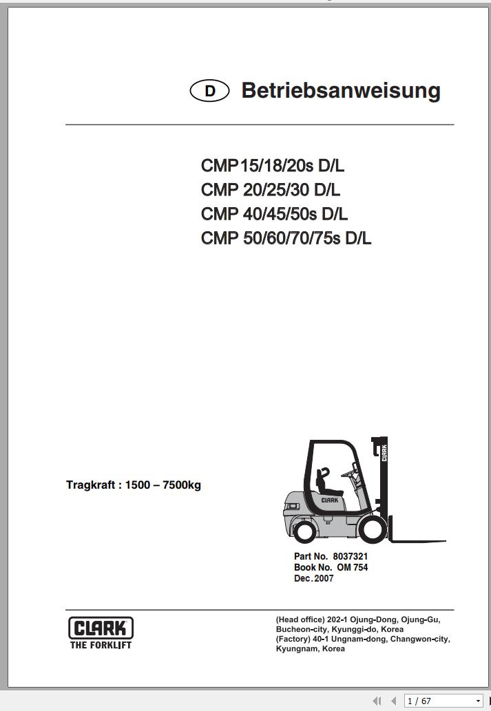 Clark CMP 15 - 75s D L Operator Manual 8037321 OM 754