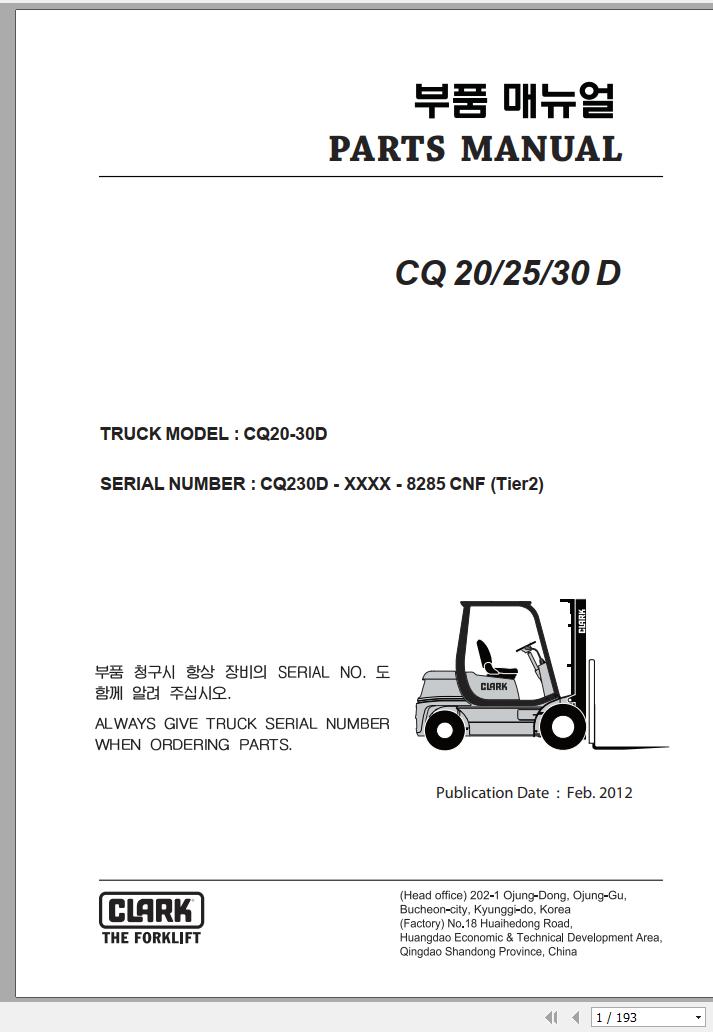 Clark CQ 20 25 30 D CQ230D 8285 CNF Parts Manual