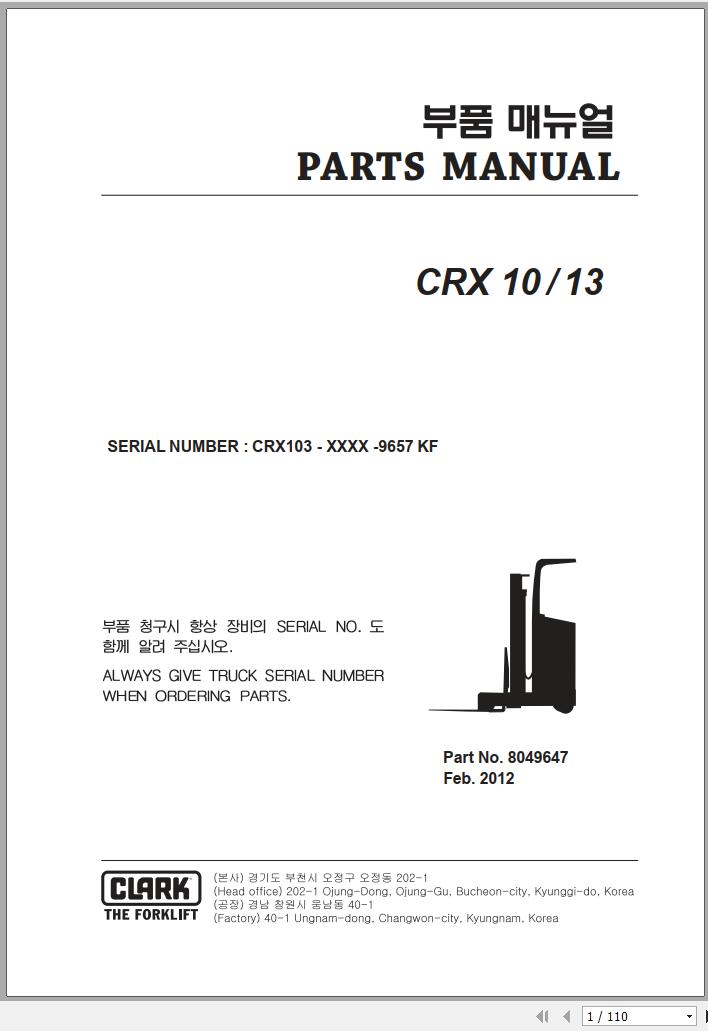 Clark CTX 10 13 CRX103 9657 KF Parts Manual 8049647