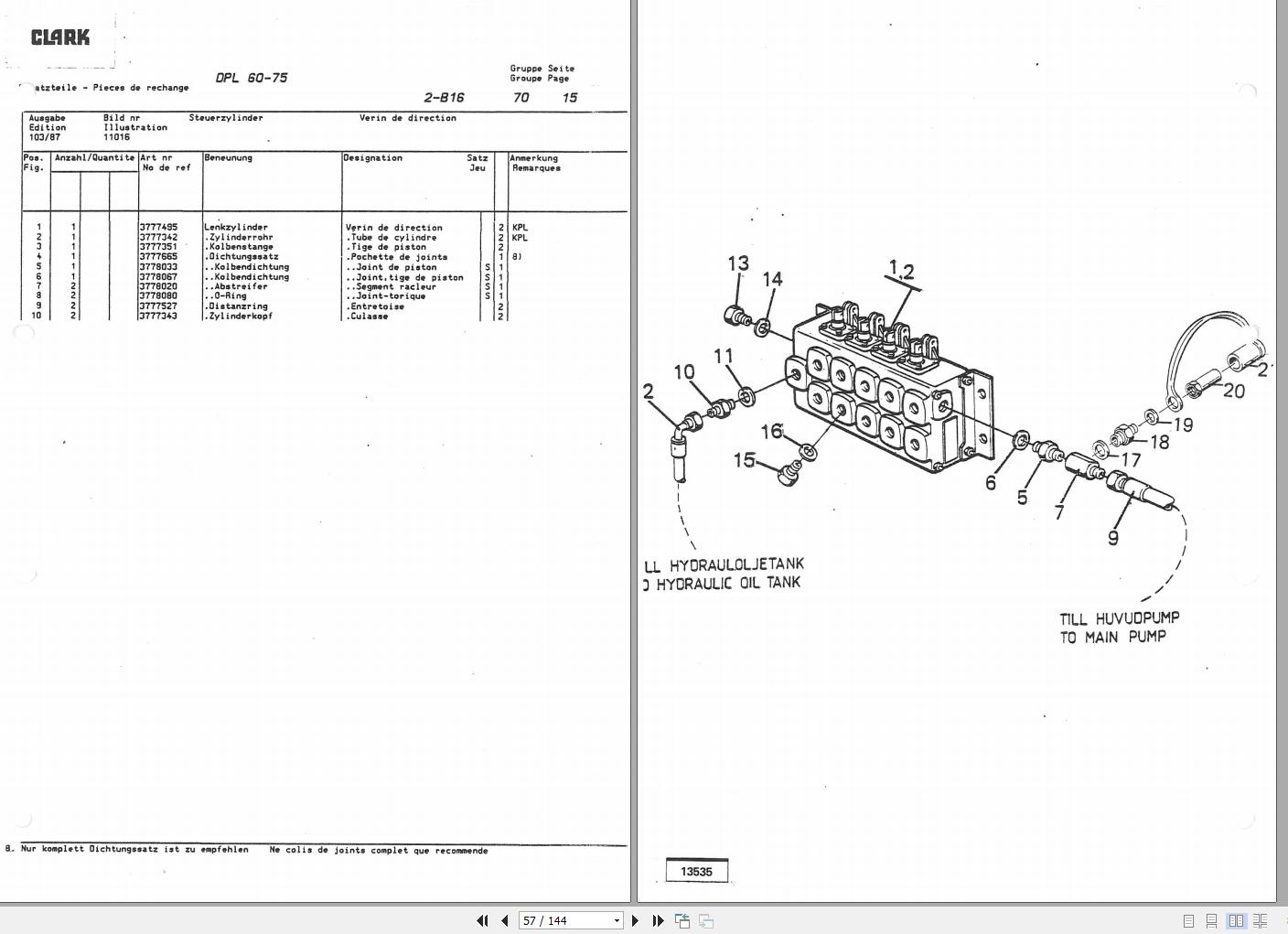 Clark DPL 60 - 75 LOT 5810 Parts Manual