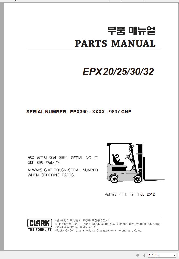 Clark EPX 20 25 30 32 EPX360 9837 CNF Parts Manual