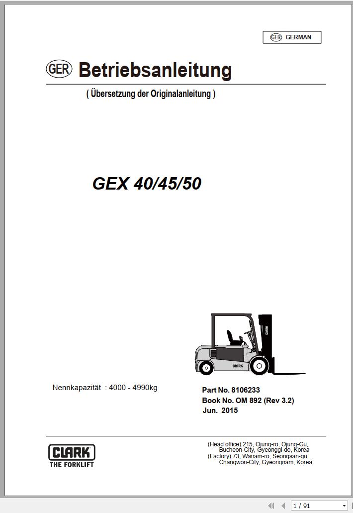 Clark GEX 40 45 50 Operator Manual 8106233 OM 892