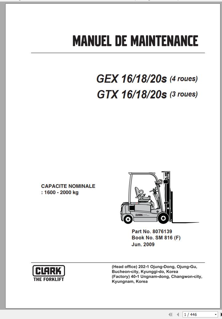 Clark GTX 16 18 20s 3 Wheels Service Manual 8076139 SM 816
