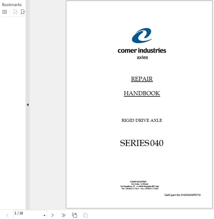 Comer S040 Axles Service Manual 918354Size: 790 KBMachine: Comer AxlesMachine Model: S040Page: 16 PagesForm Number: 918354