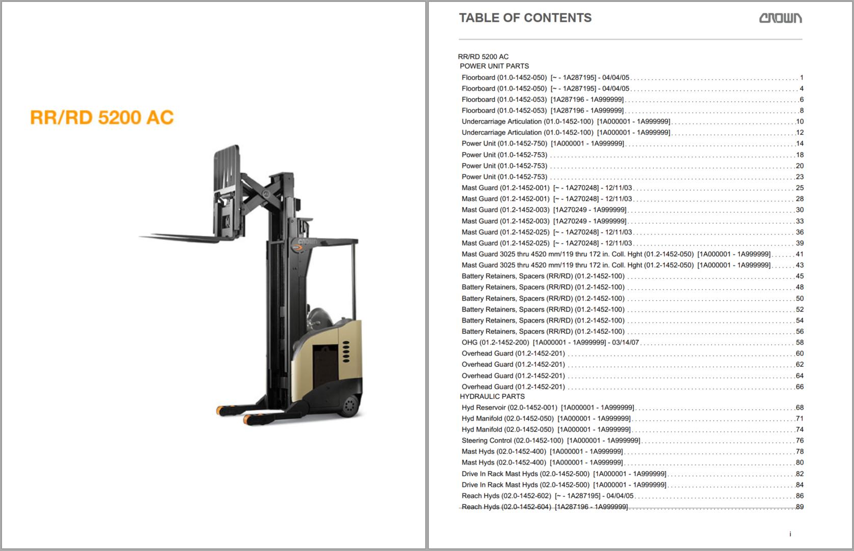 Crown RR RD 5200 AC Parts and Service Manual