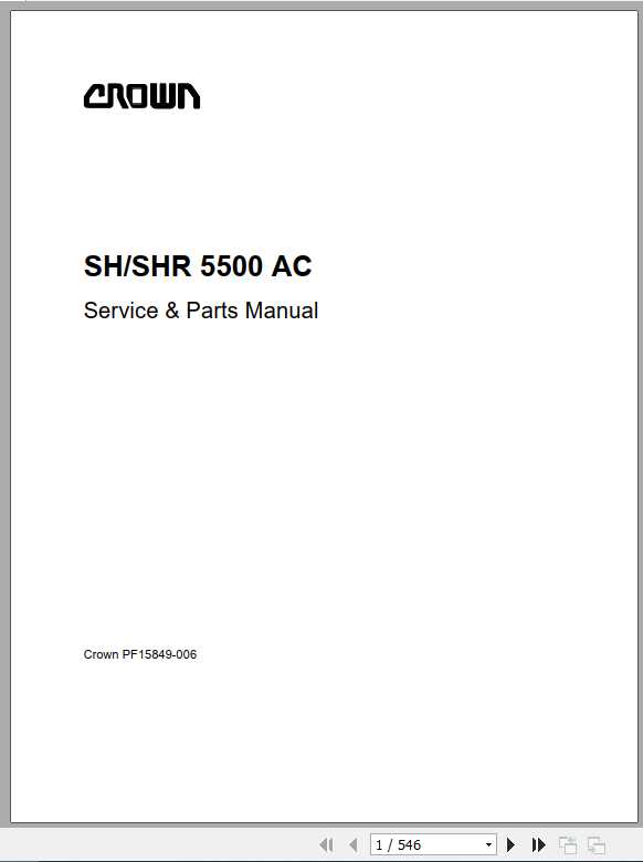 Crown SH SHR 5500 AC Service & Parts Manual PF15849-006