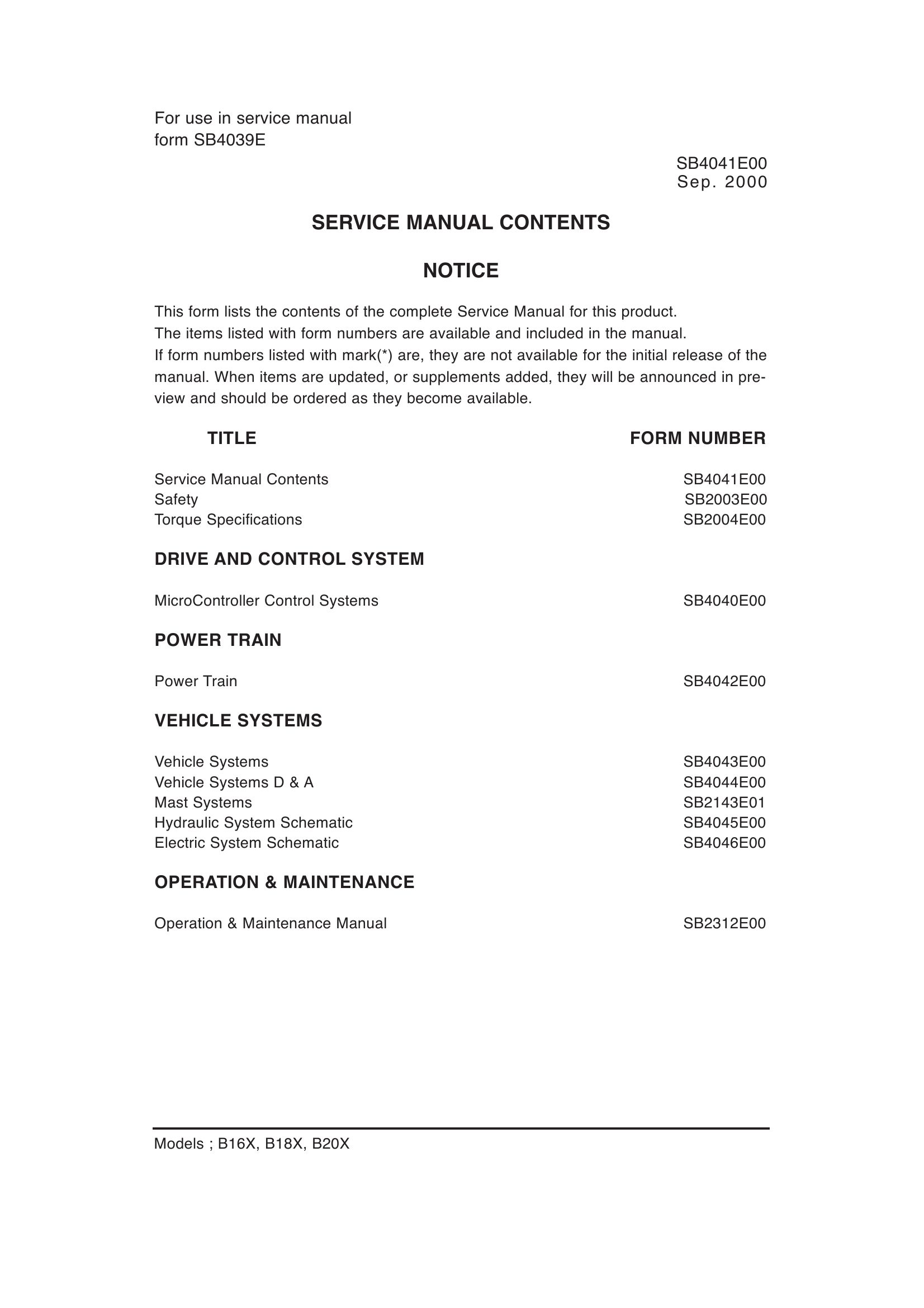 Daewoo B16X to B20X Service Manuals SB4041E00
