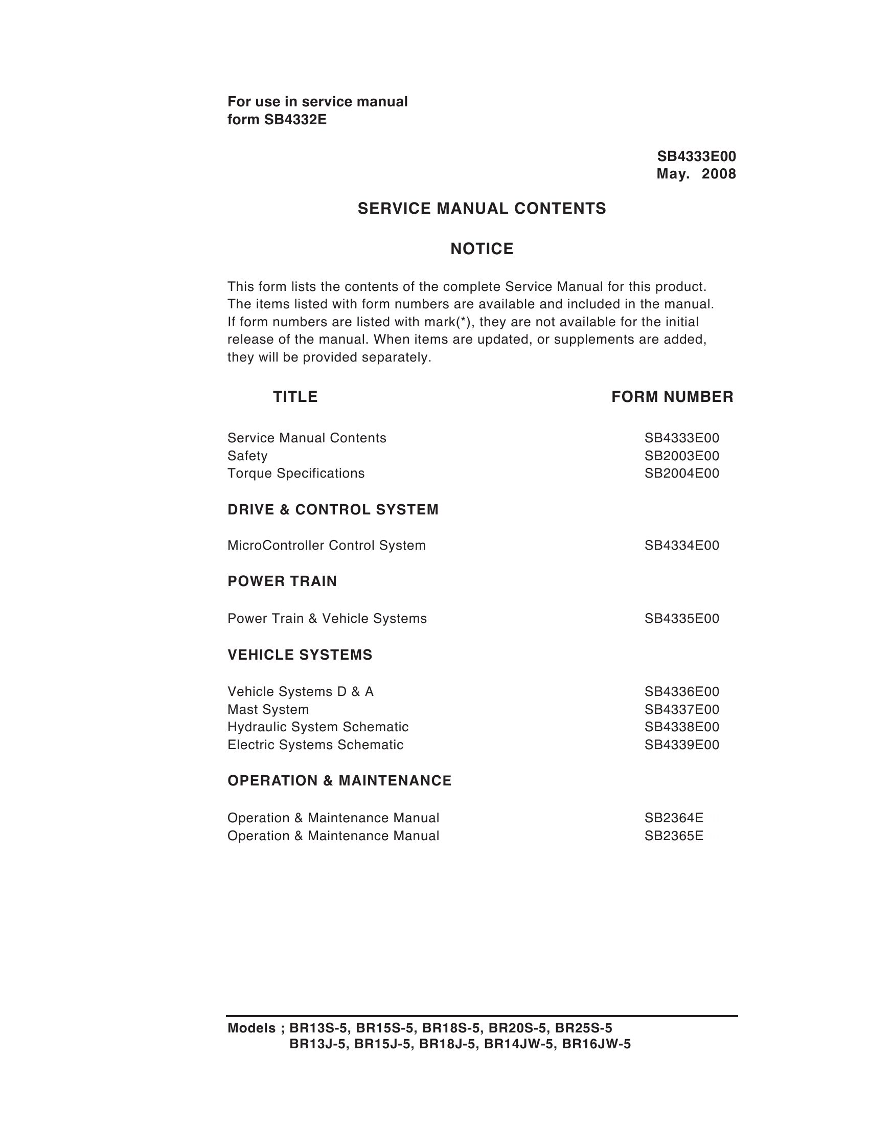 Daewoo BR13S-5 to BR16JW-5 Service Manuals SB4333E00
