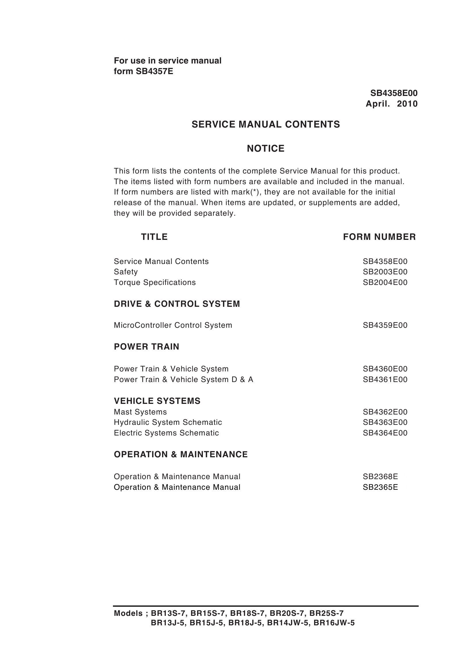 Machine Model: BR13S-7 BR15S-7 BR18S-7 BR20S-7 BR25S-7 BR13J-5 BR15J-5 BR18J-5 BR14JW-5 BR16JW-5