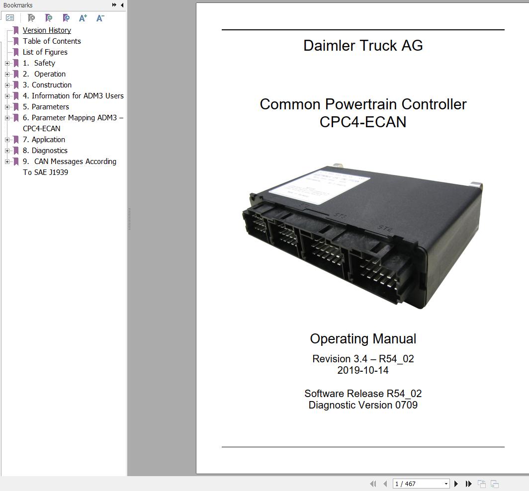 Daimler Truck AG, Common Powertrain Controller, CPC4-ECAN, Operating Manual,