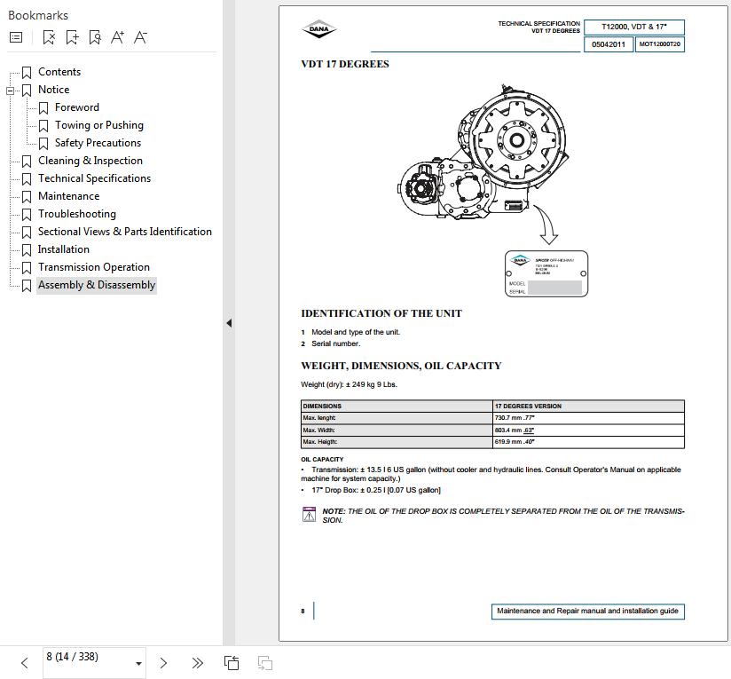 Dana Spicer T12000 Transmission Service Manual 907397-b