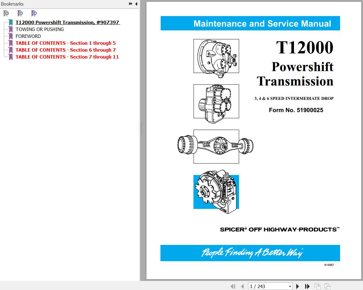 The Bookmarks Of Dana T12000 3 4 & 6-speed Intermediate Drop Powershift Transmission Maintenance and Service Manual: