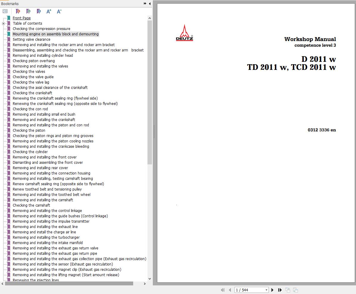 DeutzD Engine 2011 w TD 2011 w TCD 2011 w Workshop Manual 0312 3336 en