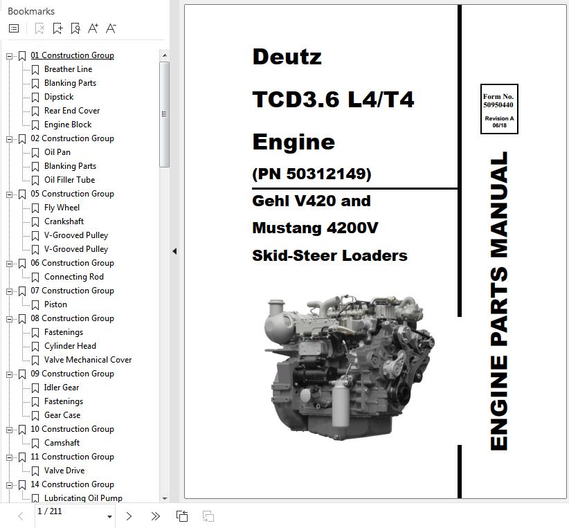 Deutz TCD3.6L4 TCD3.6T4 Engine Parts Manual 50950440A