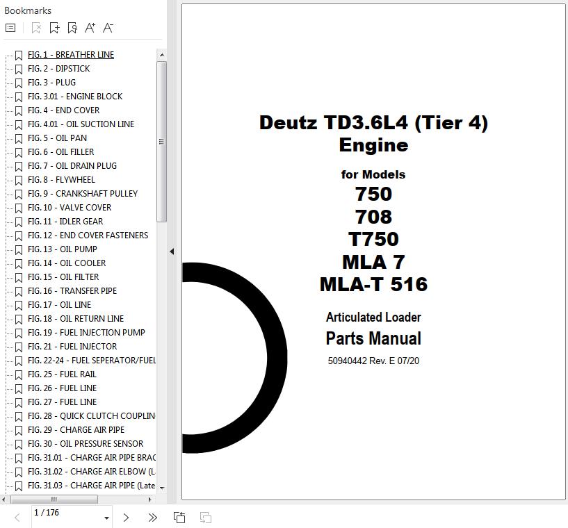 Deutz TD3.6L4 Tier 4 Engine Parts Manual 50940442