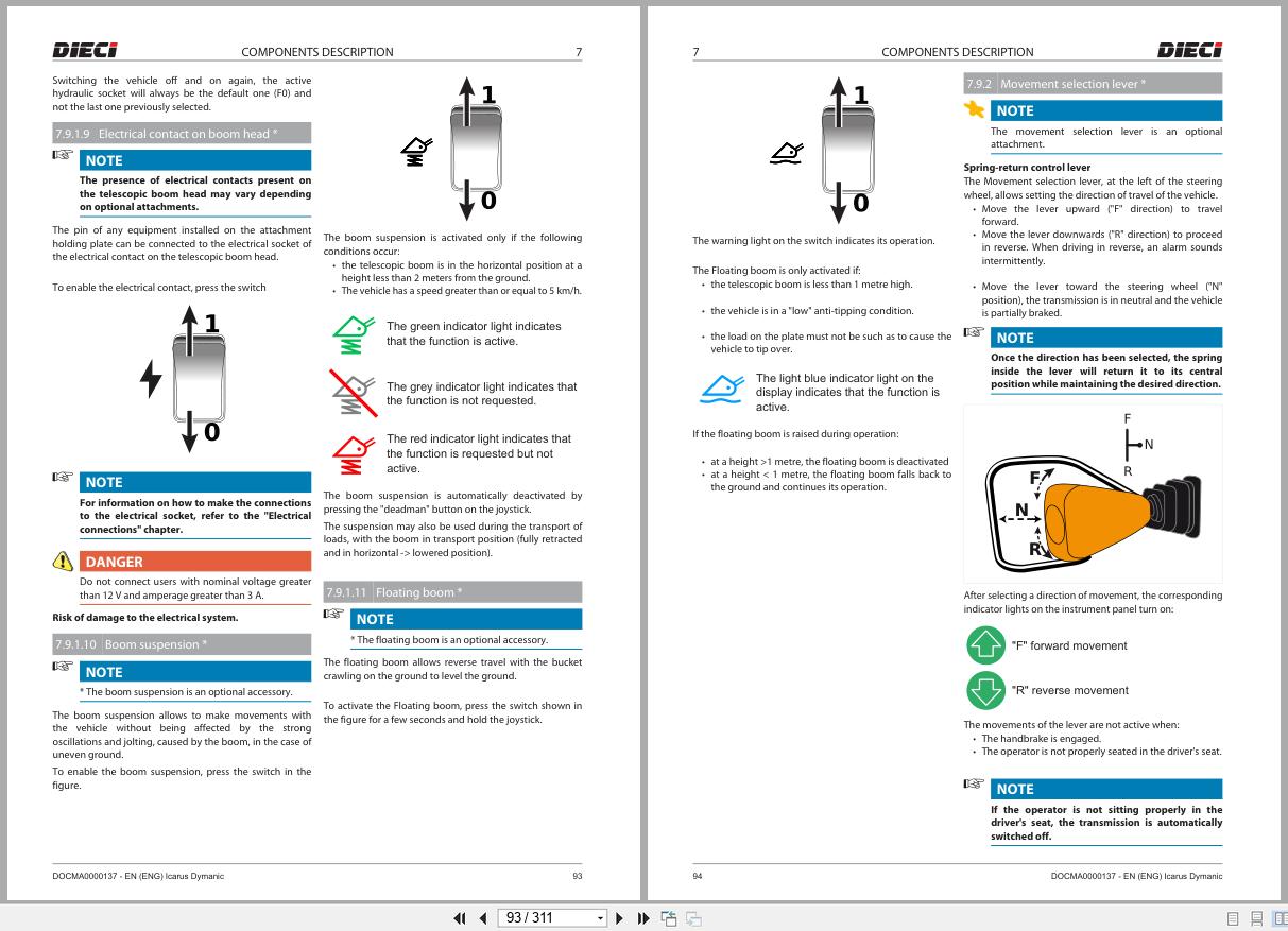 Machine Model: DIECI ICARUS 40.14, ICARUS 45.17, ICARUS 60.18 DYNAMIC - GD Telehandler