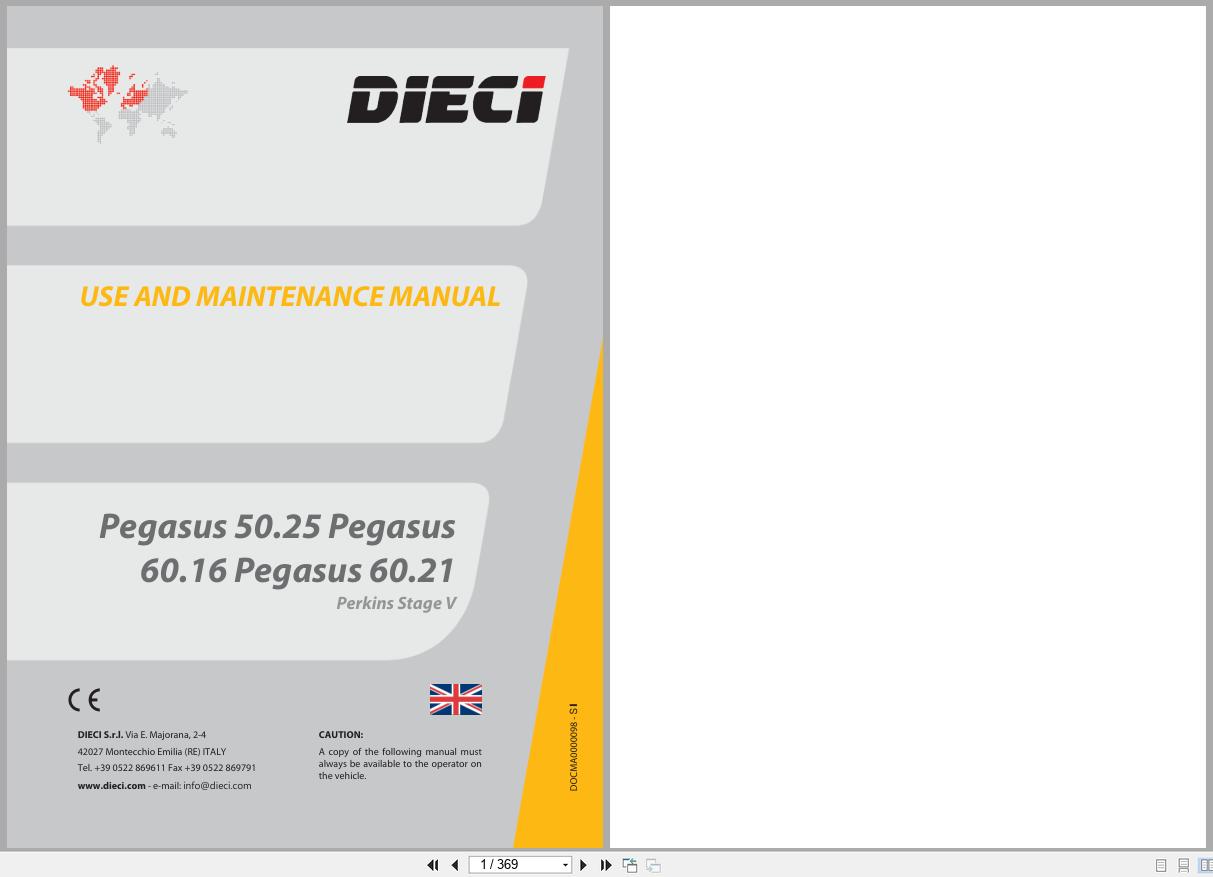 Machine Model: DIECI PEGASUS 50.25, PEGASUS 60.16, PEGASUS 60.21 Telehandler