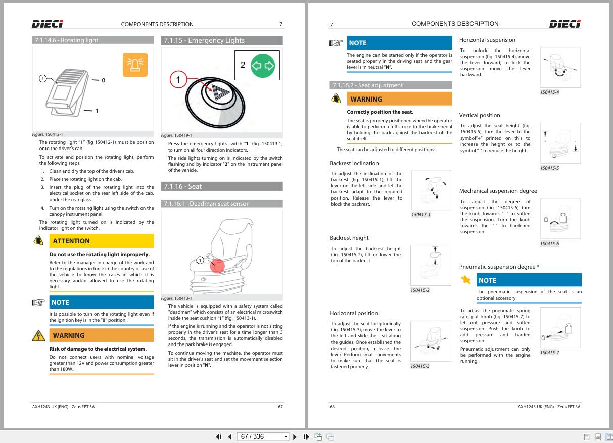 Machine Model: DIECI ZEUS 37.7, ZEUS 37.8, ZEUS 38.10, ZEUS 33.11, AGRI STAR 37.7, AGRI STAR 37.8, AGRI STAR 38.10