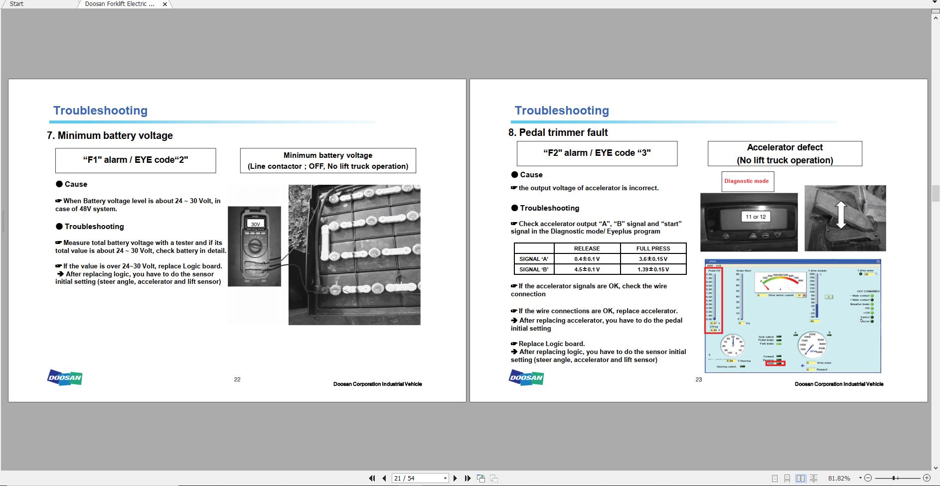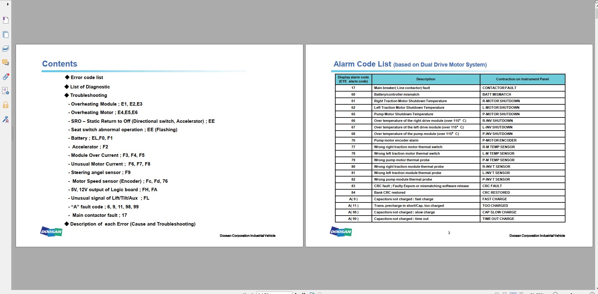 Doosan 5 Series Troubleshooting Fault CodesSize: 17.7 MBMachine: Forklift Machine Model: 5 SeriesPages: 54 Pages